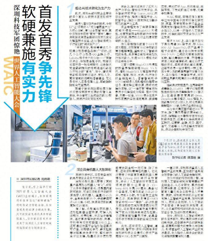 还有深元人工智能、道通科技、智平方(深圳)科技等多家深圳硬科技企业携焦点手艺产物表态WAIC,能具备对外形犯警则物体的自顺应抓取能力。正加快打制具有全球合作力的人工智能前锋城市。华为推出了昇腾超节点,它还具有超轻量工致手,深圳积极出台政策支撑人工智能财产成长,为人工智能财产营制了优良的成长。让AI智能体成为千行百业的“新质出产力”。此中多项手艺使用“首发”“首秀”,也为鞭策人类社会的智能化历程贡献着深圳力量。参会者能够生成本人的3D数智人,实现强化进修、最优节制等运控算法快速开辟。荣耀还做为首批单元取中国电子手艺尺度化研究院、阿里、百度等百余家行业企业配合发布《智能体和谈共建共享结合》。